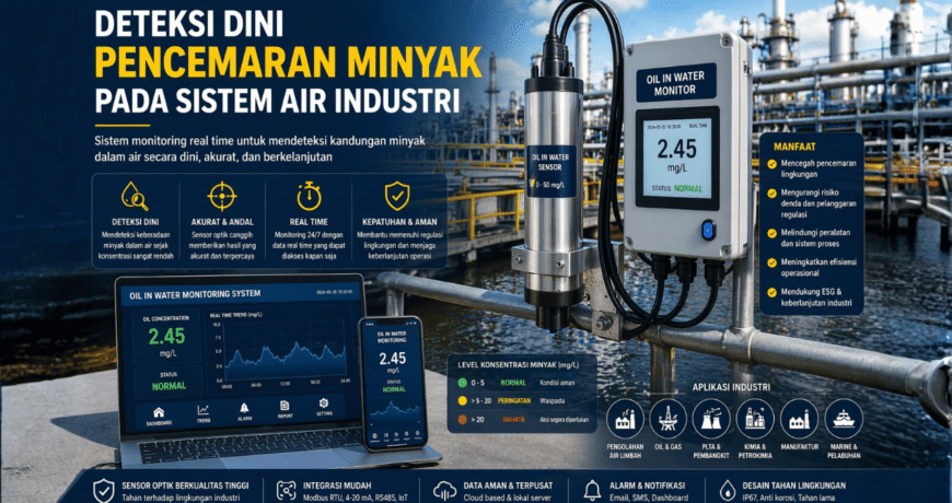 Ketika deteksi dilakukan secara real time, operator dapat mengetahui perubahan kandungan minyak lebih cepat. Selain itu, tim teknis juga bisa segera mengambil langkah korektif sebelum masalah berkembang menjadi pencemaran yang lebih luas. Pendekatan ini tidak hanya melindungi kualitas air, tetapi juga membantu menjaga efisiensi proses, memperpanjang umur peralatan, dan mengurangi potensi kerugian operasional.
