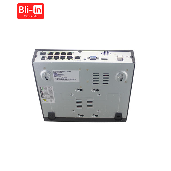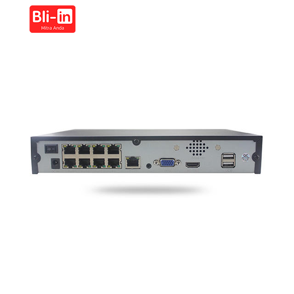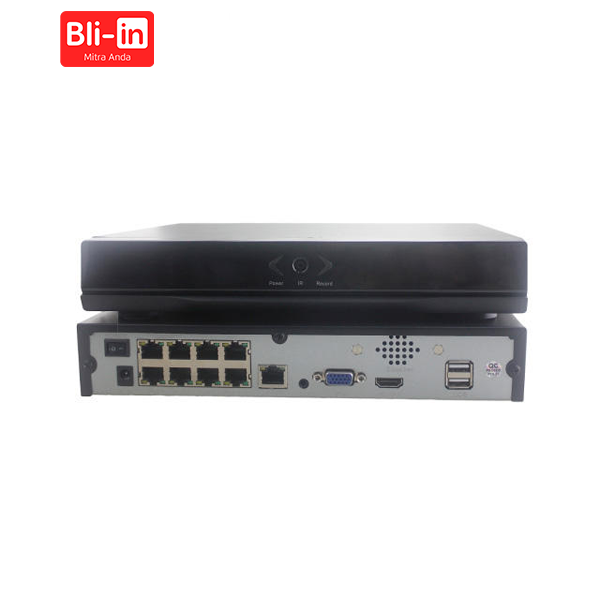 (Dengan 8 port RJ45, memungkinkan 4 buah kamera IP POE terhubung langsung ke NVR ini)