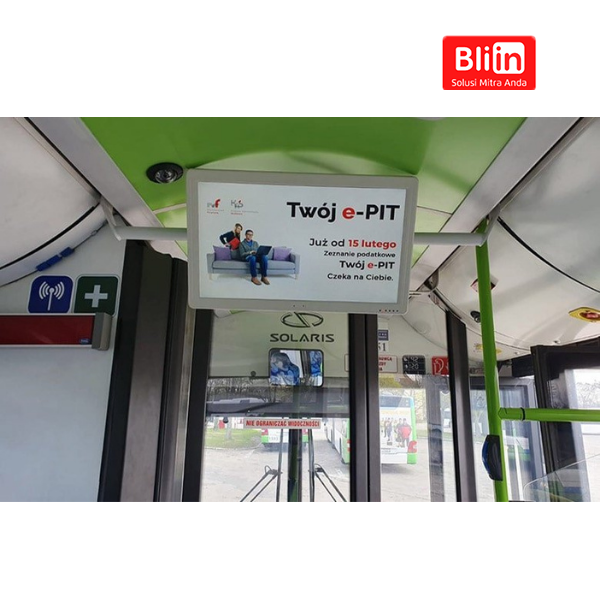 Atas dasar signage digital umum, monitor bus tv telah memperoleh beberapa fungsi khusus, seperti siaran berbasis lokasi, koneksi 3G/4G/Wi-Fi, hotspot Wi-Fi dan sinkronisasi beberapa layar. Untuk memastikan operasinya yang stabil, beberapa tindakan khusus juga telah diperkenalkan, seperti braket pemasangan anti-kendur, catu daya tegangan lebar tahan lonjakan, dan sambungan sekrup kabel.