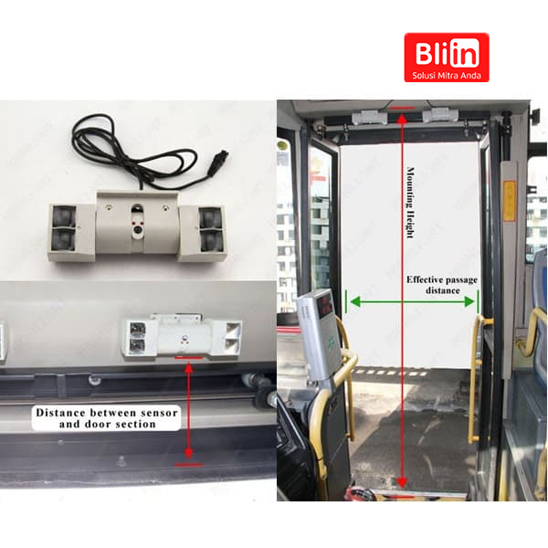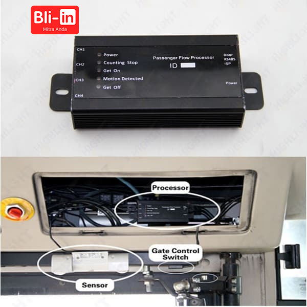 1. Sensor (HPC086-S) , Dipasang di langit-langit pintu, menghitung orang masuk atau keluar dari bus.