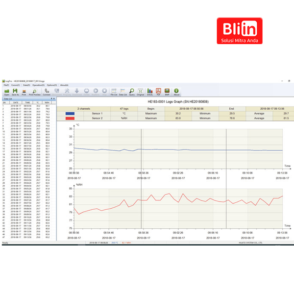 Tahun, bulan, hari, suhu secara bersamaan ditampilkan.