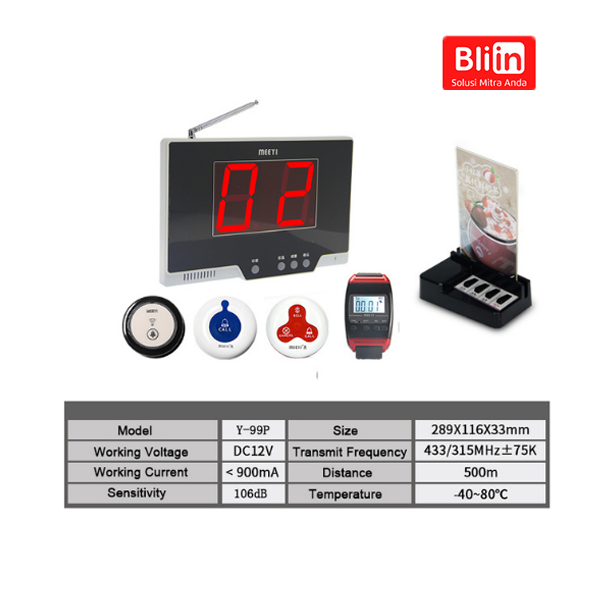 Nama Y-99P Restoran Layanan Nirkabel Sistem Panggilan Penerima Tampilan Nomor Penghitung
