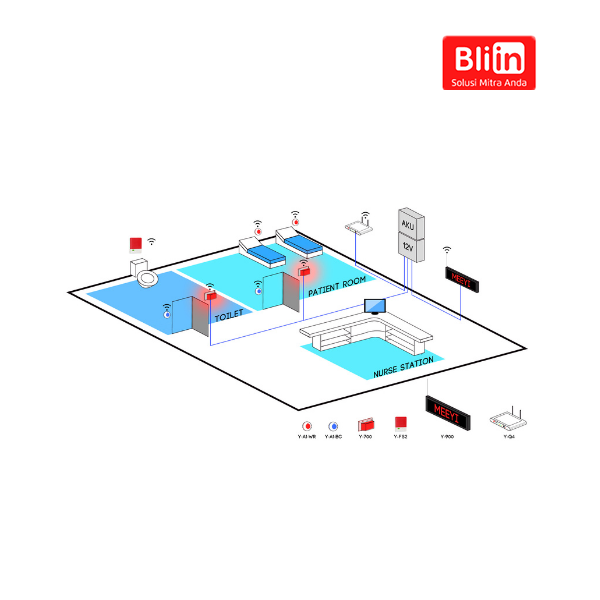 Sistem panggilan perawat nirkabel ini termasuk tombol panggil, pager pergelangan tangan, penerima tampilan, lampu koridor, penguat sinyal.