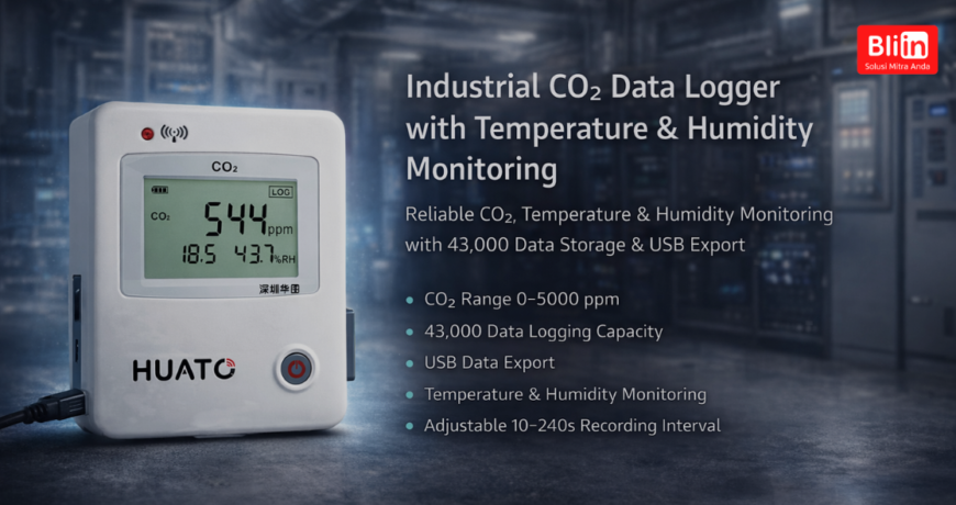 HUATO S653 CO₂ Gas Detection Data Logger adalah perangkat monitoring kualitas udara yang dirancang untuk mengukur konsentrasi CO₂ (karbon dioksida), suhu, dan kelembapan secara akurat dan berkelanjutan. Dengan rentang pengukuran CO₂ hingga 5000 ppm serta kapasitas penyimpanan hingga 43.000 data, perangkat ini ideal untuk kantor, ruang kelas, laboratorium, fasilitas kesehatan, dan area industri. Dalam lingkungan kerja modern, kualitas udara menjadi faktor penting yang mempengaruhi kesehatan, produktivitas, dan keselamatan. Kadar CO₂ yang tinggi dapat menyebabkan kelelahan, penurunan konsentrasi, serta gangguan kenyamanan ruangan. Tanpa sistem monitoring yang akurat, perubahan kualitas udara sering kali tidak terdeteksi secara real-time. Banyak fasilitas masih mengandalkan ventilasi manual tanpa data aktual. Hal ini menyulitkan pengambilan keputusan berbasis data dan meningkatkan risiko kualitas udara yang tidak sesuai standar. Monitoring berkala tanpa sistem pencatatan juga membuat analisa historis menjadi terbatas.